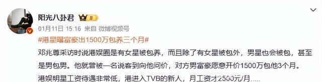 邓兆尊说,刚入行那会儿,有次在录影厂后台准备拍戏,突然过来个陌生人,上来就说有富豪看上他了,愿意出1500万港币,让他陪三个月。