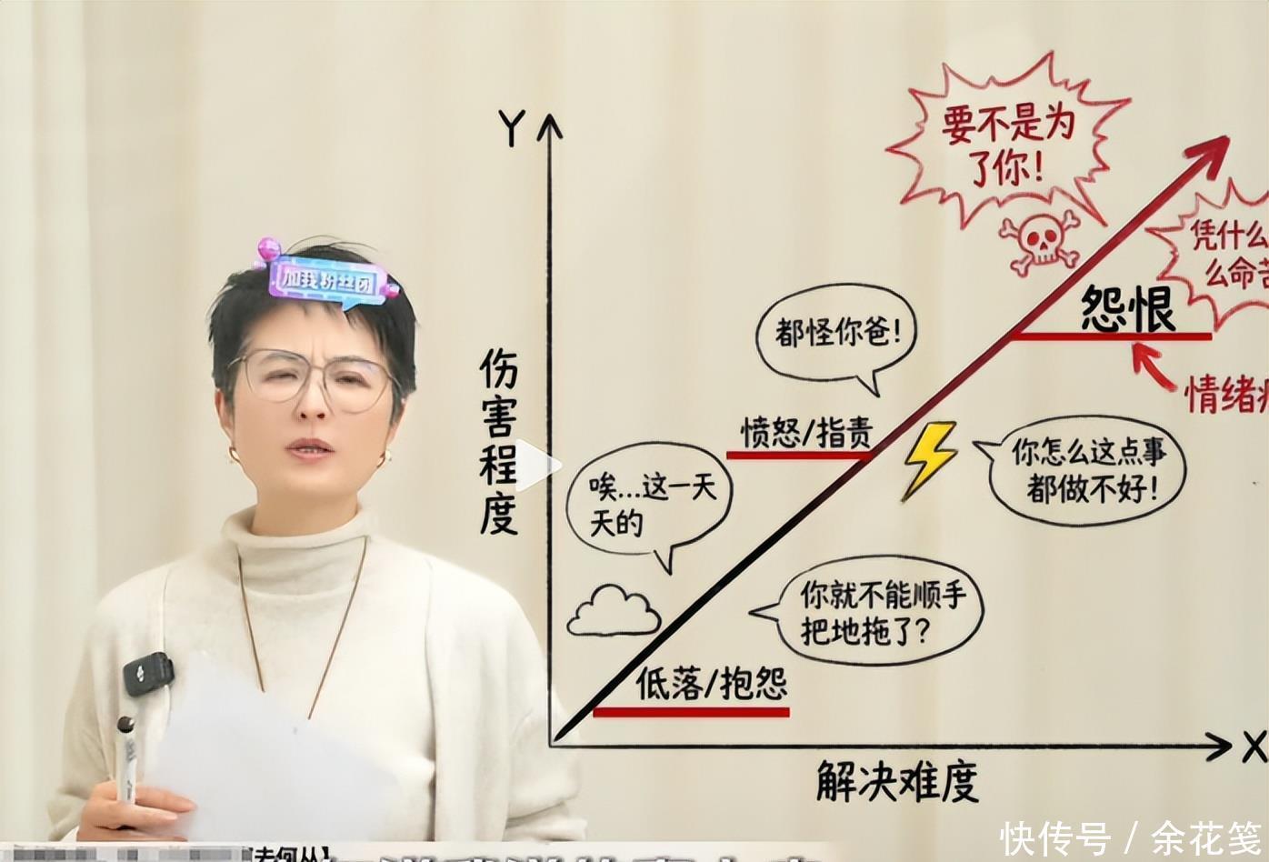 她还做了一个细致的表格图,为大家展示各种坏情绪,用各种用专业的语言给大家解释,关于被家庭内耗的孩子怎么兼顾自救和学业?她坐下来给这个小姑娘提供了很好的几条思路,很多网友都在评论区留下了自己的发言,有很多年轻网友也感同身受。