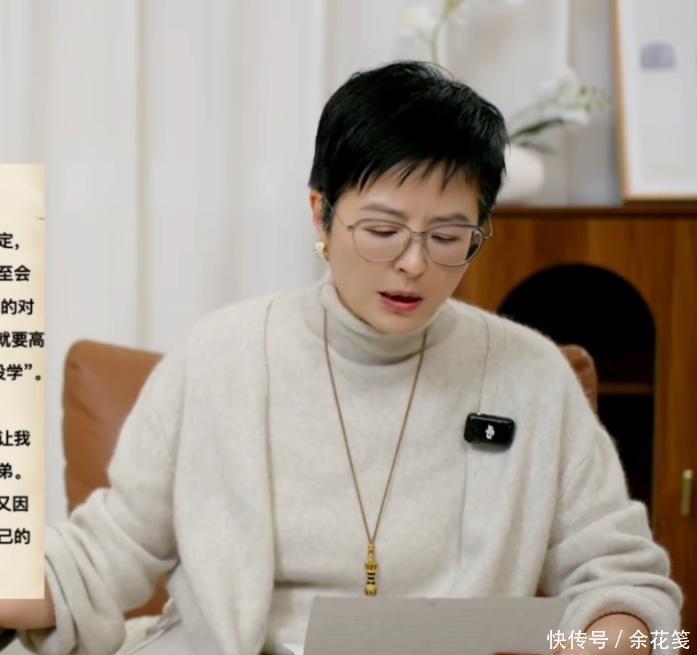 还是一头标志性的短发,之前的她已经是满头白发,现在应该是染成黑色的了,这样的她看起来年轻了很多。戴着一副黑框眼镜,认真读信的她特别知性,读起这封来信,她越读越替这个孩子难受,非常的心疼这个孩子,父母为了孩子不离婚其实不一定好。