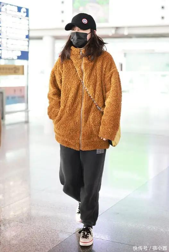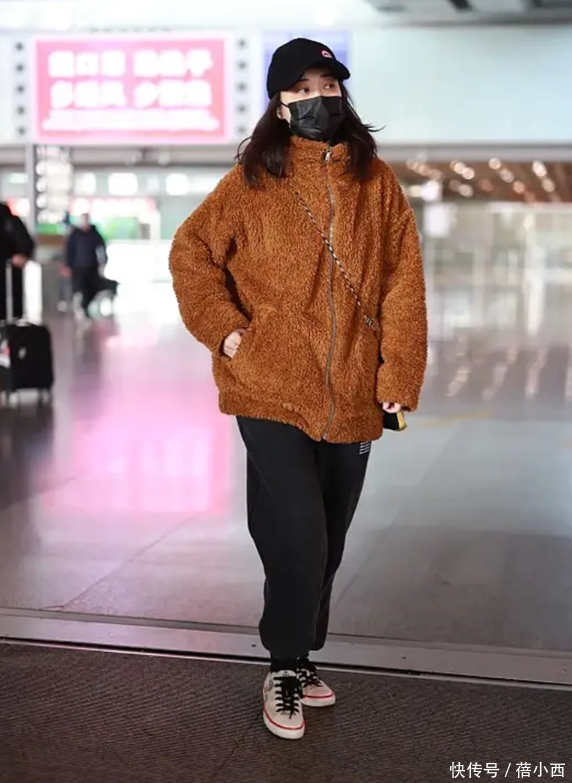 这身穿搭十分休闲,适合平日注重舒适度的时髦精。上半身穿的羊羔毛外套是棕色面料,此色对穿着者年龄和肤色都十分友好,丝毫不担心会显得人老气。立领设计很适合当下冬季,因为领子面料可有效遮挡脖子肌肤,无时无刻都不会被冷风吹到。羊羔毛外套的面料摸上去软软糯糯,其之所以在冬季很流行,是因为面料自带温度,肌肤碰到的一刹那不会感受到凉。