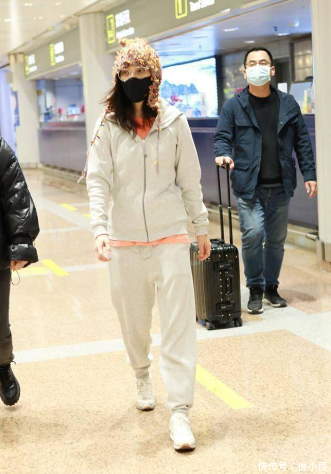 在穿衣时,我们既可以选择“上宽下紧”的穿搭技巧,也可上下穿的都为宽松款。梅婷选了后者,腿上是一条深灰色运动裤,裤子面料的柔软度不必多说,手感绝佳。冬天不管穿什么裤子,基本都会选加绒款,这和气温密切相关。