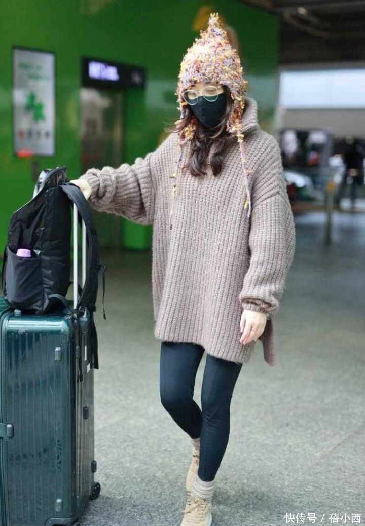 帽子颜色不单一,视觉上十分养眼。这款彩色帽子适合多种场合戴,比如与男友约会时、和闺蜜逛街、出去旅游等。上半身是一件灰色毛衣,不仅版型宽松,还采用了落肩袖设计,真是亮点频出。这件毛衣在遮肉方面效果显著,有此需求的女生可放心购入。如果你身材纤细且个子娇小,腿上穿的裤子也为宽松版型,那么修身些的毛衣更适合你。